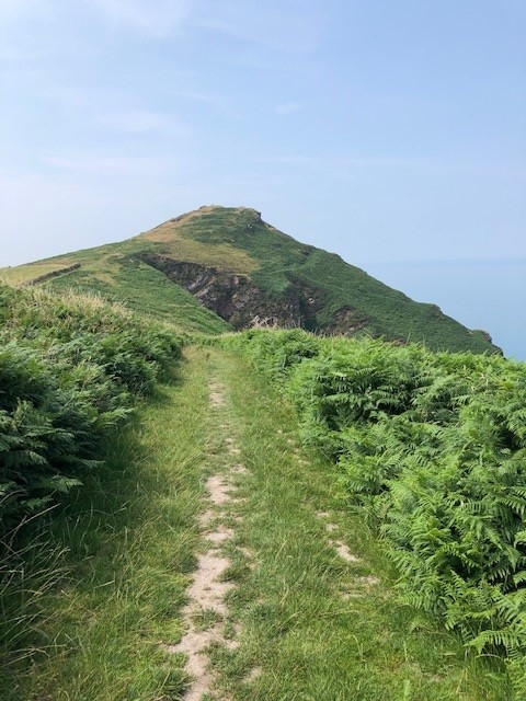 I headed onwards towards Lee Abbey along winding rural roads that separated rolling meadows. I met a youngish couple who were heading to one of the small beaches. They said they’d completed the path 2 years ago and were surprised when I mentioned I’m walking over to Combe Martin. “It’s pretty steep” they said with a smile, “but it’s ok as not too windy today with the heights”.